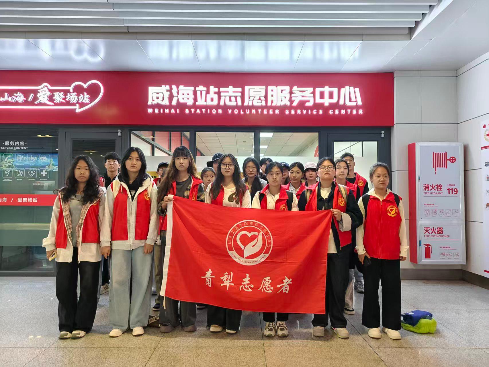 为积极应对威海市国庆假期文化旅游高峰,进一步满足各地游客高质量出游需求,10月1日至3日,根据团市委统一安排,校区组织120名志愿者在威海站开展为期三天的助运服务。