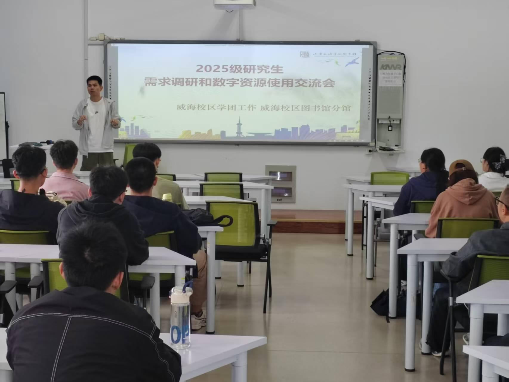 10月16日,威海校区图书馆分馆举办2025级研究生数字资源使用交流会,2025级研究生参加培训。