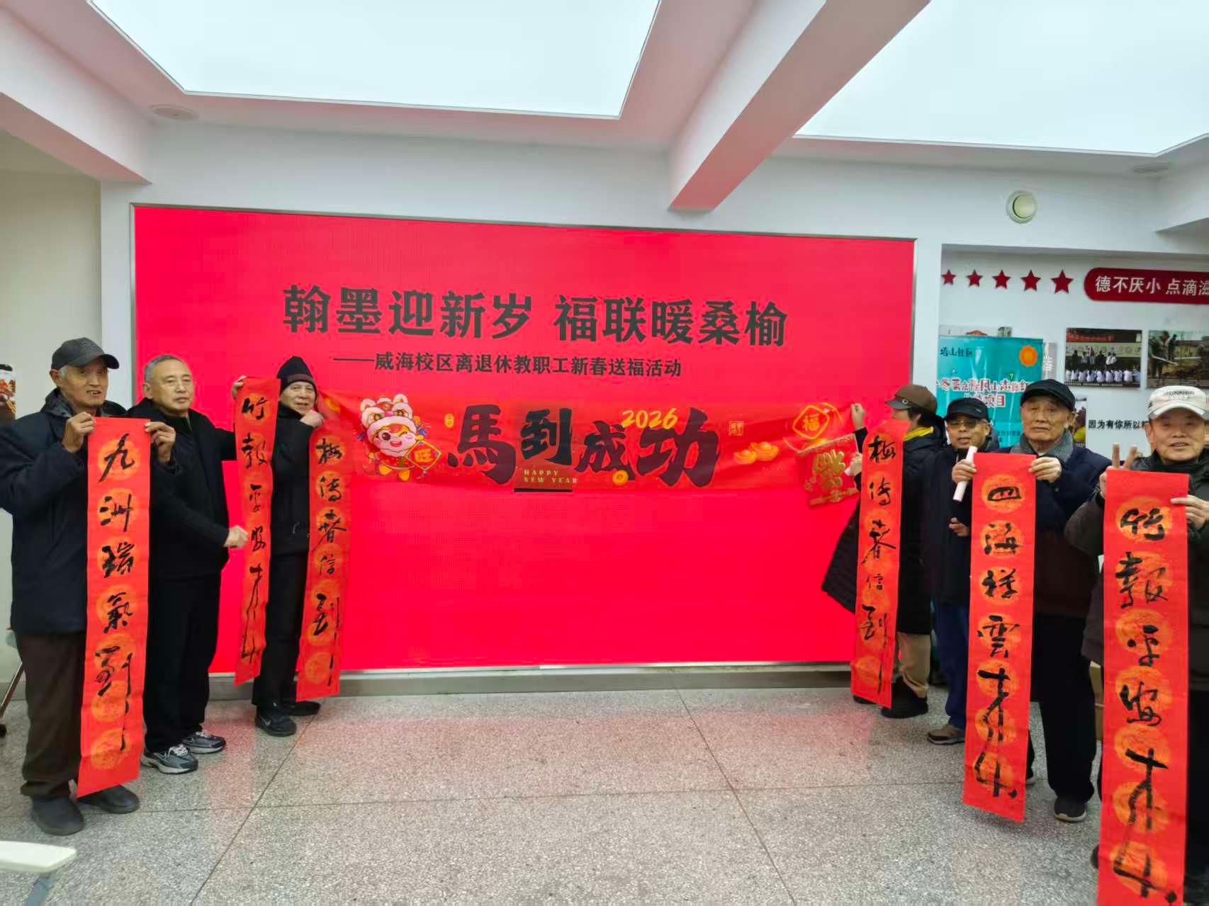 新春将至,威海校区开展“翰墨迎新岁 福联暖桑榆”主题活动,以笔墨寄情、福利暖心,为退休教职工送上新春美好祝福。